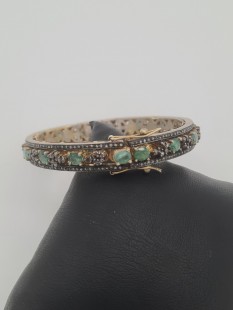 925 Ayar Gümüş, Elmas ve Zümrüt Taşlı Bileklik