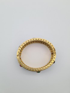 925 Ayar Gümüş, Mine İşlemli, Zümrüt Yakut Safir Oval Elmaslı Bileklik