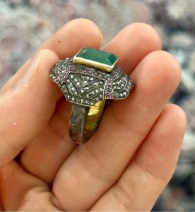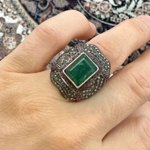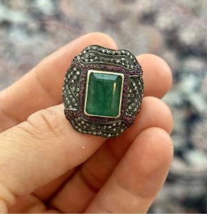 925 Gümüş, Doğal Zümrüt, Yakut v Elmas Tasarımlı Yüzük