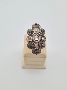 925 Ayar Gümüş, Minik Zümrüt, Yakut ve Elmas Yüzük