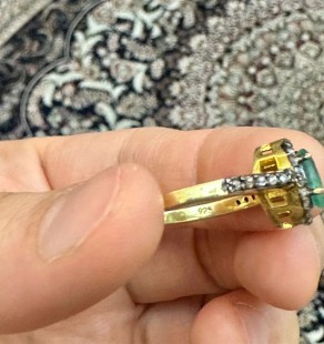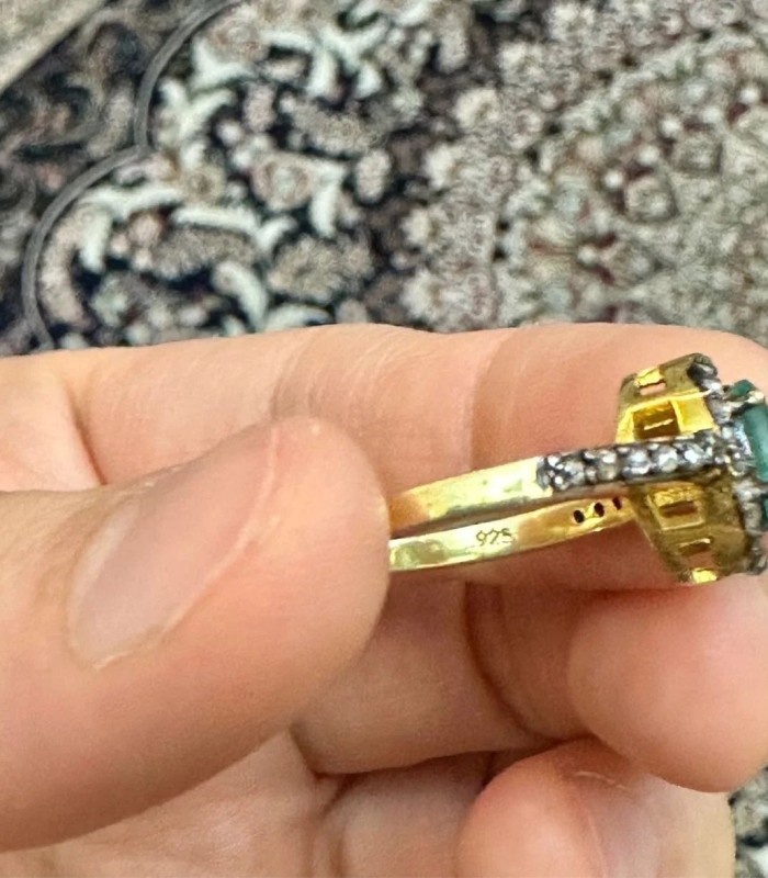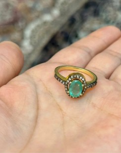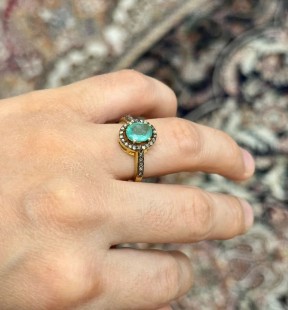 925 Gümüş Altın Kaplama, Has Zümrüt ve Elmas Yüzük