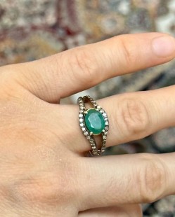 925 Gümüş, Zümrüt v Elmas Yüzük