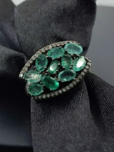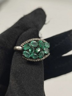 925 Gümüş, Has Zümrüt v Elmas Yüzük